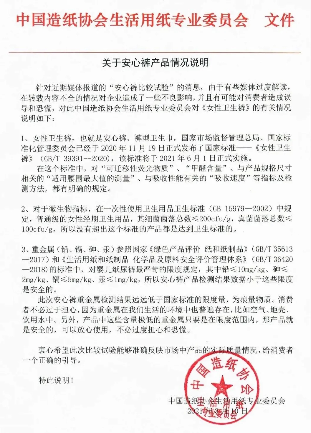 對(duì)于此次風(fēng)波,衛(wèi)生用品協(xié)會(huì)也出面為以上品牌“伸冤”,并給出了具體說明,強(qiáng)而有力地回?fù)袅?ldquo;標(biāo)題黨”。