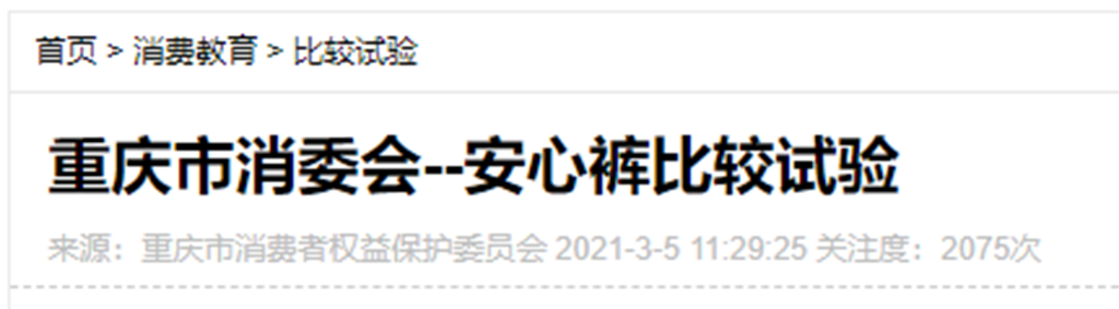 經(jīng)過深入了解,發(fā)現(xiàn)重慶市消費(fèi)者權(quán)益保護(hù)委員會(huì)的確曾經(jīng)發(fā)布過關(guān)于安心褲的檢驗(yàn)結(jié)果,此次對(duì)目前市場(chǎng)上比較暢銷的15款安心褲開展了比較試驗(yàn),主要對(duì)安心褲的衛(wèi)生性能、安全性能、功能性指標(biāo)、舒適性指標(biāo)等進(jìn)行測(cè)試。